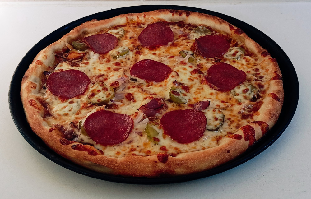 Barbeque szósz, csirkemell, hagyma, csemege uborka, szalámi, sajt