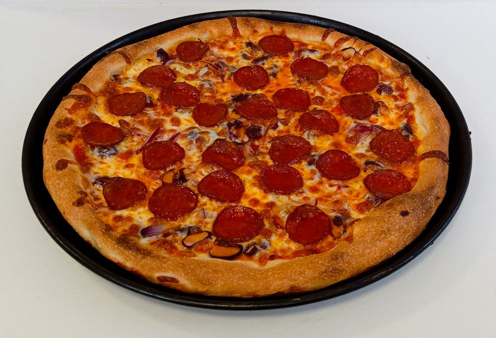 Pizzaszósz, bab, hagyma, kolbász, sajt